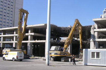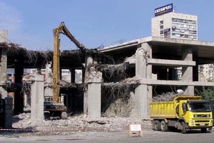 На прошлой неделе мы сообщали о том, что со стороны НСК «Олимпийский» приступило к работе сразу две «чудо-машины». К сожалению, сейчас работа ведется лишь одной, но, нельзя не отметить, что в этом направлении работники достигли наилучших результатов за семь прошедших дней. Мусор вывозится своевременно, что обеспечивает бесперебойную работу по сносу железобетона.