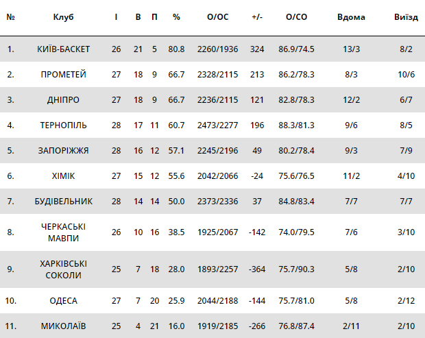 Турнирная таблица Суперлиги. Киев-Баскет выиграл дерби у Будивельника
