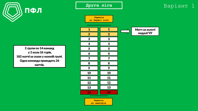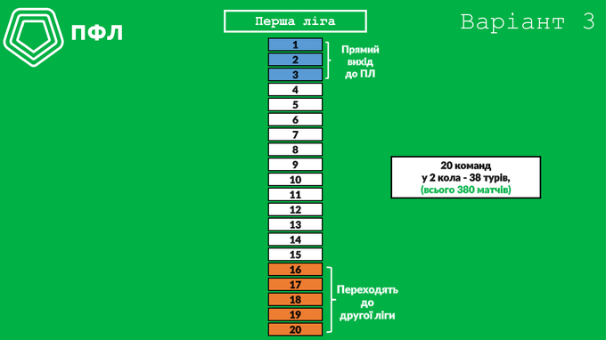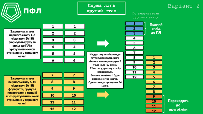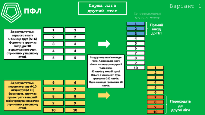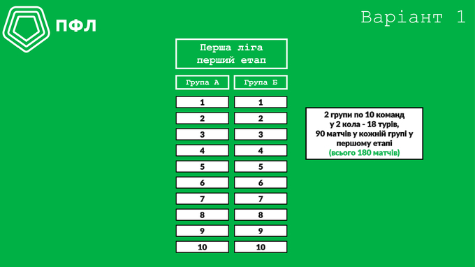 На заседании принят проект, по которому в Первой лиге сыграют 20 клубов, разделенных на 2 группы по 10 команд по географическому принципу. После двух кругов 10 лучших команд разыграют путевки в УПЛ, а 10 худших команд будут бороться за выживание, и 4 аутсайдера вылетят во Вторую лигу.