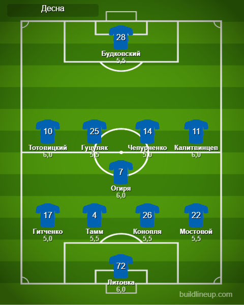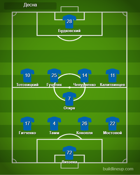 «Десна»: Литовка, Тамм, Огиря, Тотовицкий, Калитвинцев, Чепурненко (Домбровский, 46), Гитченко, Мостовой (Картушов, 72), Гуцуляк (Безбородько, 84), Конопля, Будковский.