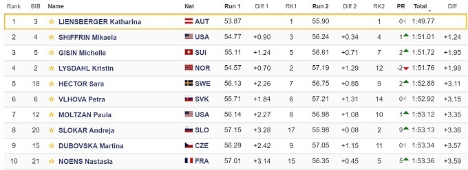 гостра кінцівка в слаломі-на малий кубок троє претенденток, але австрійка явно виграла обидва заїзди