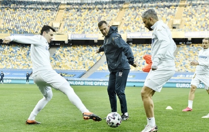 Сборная Украины во вторник готовилась к матчу отбора ЧМ-2022 против Казахстана. Команда Андрея Шевченко работала без Виталия Миколенко, который получил красную карточку в прошлой игре, и Евгения Коноплянки, у которого повреждение ноги.