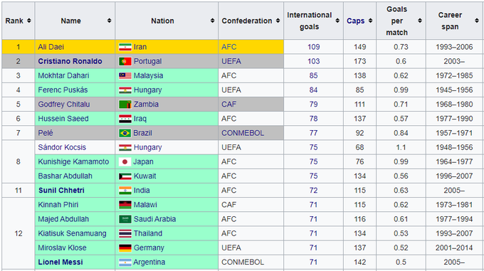 Больше Криштиану забил только бывший форвард сборной Ирана Али Даеи