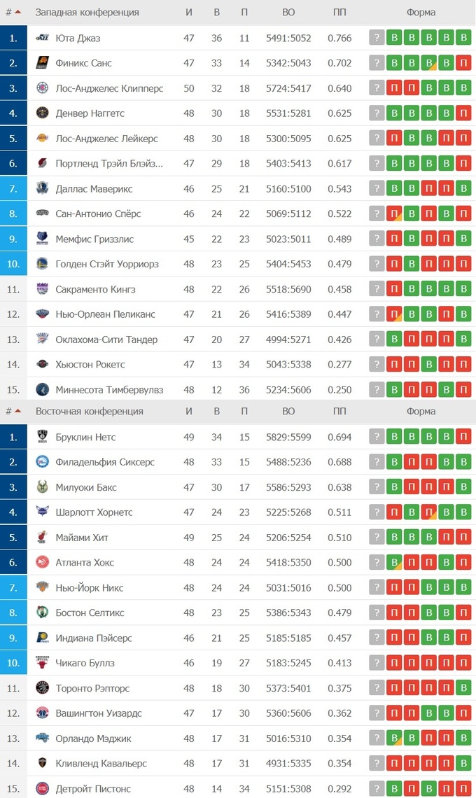 «Клипперс»: Ленард (24 + 12 подборов), Джордж (17 + 8 подборов), Моррис (8), Зубац (8), Джексон (7) – старт; Батюм (6), Паттерсон (4), Мэнн (18), Кеннард (2).