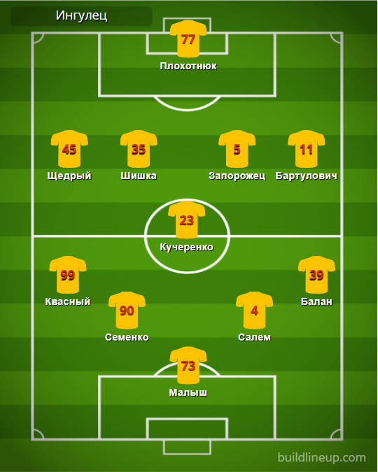 «Ингулец»: Малыш – Квасный, Семенко, Салем, Балан – Кучеренко – Щедрый (Коваленко, 46), Шишка, Запорожец (Чайковский, 73), Бартулович (Козак, 46) – Плохотнюк (Шевцов, 73).