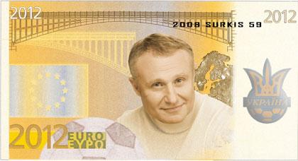 К Евро-2012, Европейский центрбанк собирается ввести в оборот новую купюру. На банкноте номиналом 2012 евро будет размещен портрет президента Федерации футбола Украины Григория Суркиса.