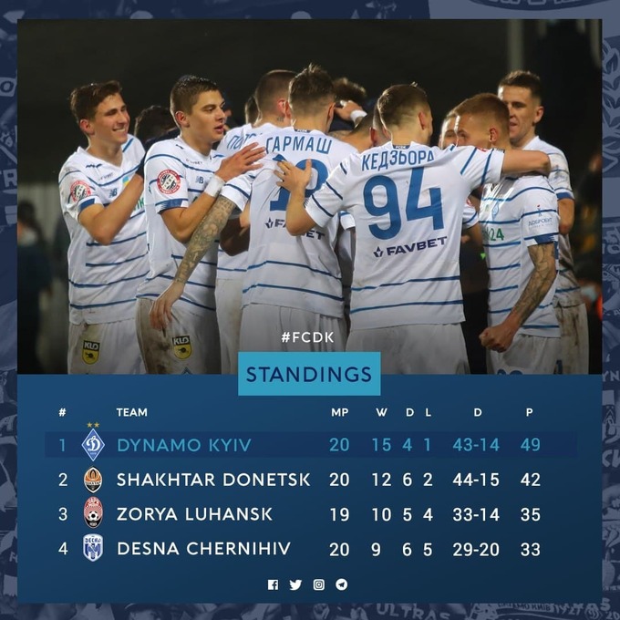 Турнирная таблица УПЛ. Динамо с трудом сохранило отрыв от Шахтера в 7 очков