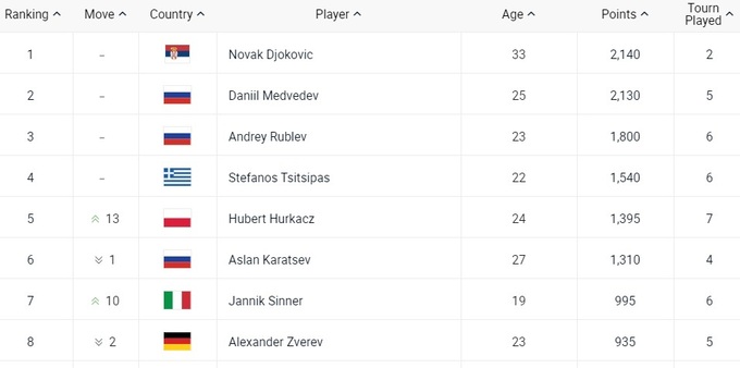 Наибольшего прогресса достиг поляк Хуберт Хуркач. Победа в Майами позволила ему подняться на 16-ю строчку мирового рейтинга, установив личный рекорд, финалист Янник Синнер теперь 23-й и это тоже его лучшее достижение.