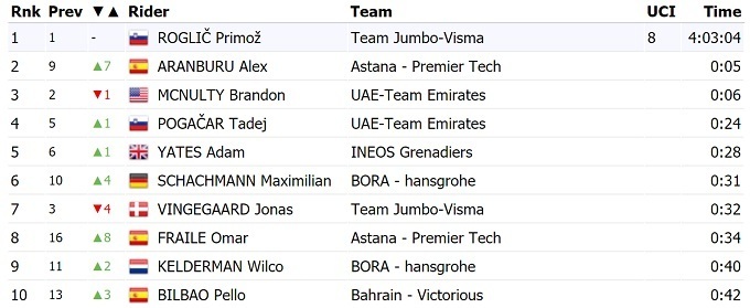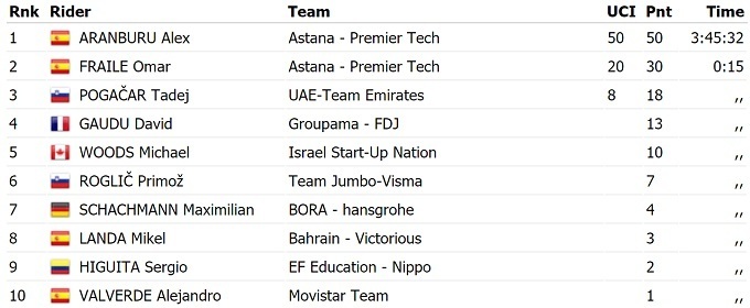 Вторым стал еще один испанец из «Астаны» - Омар Фрайле. Лидерство в общем зачете сохранил победитель первого этапа Примож Роглич.
