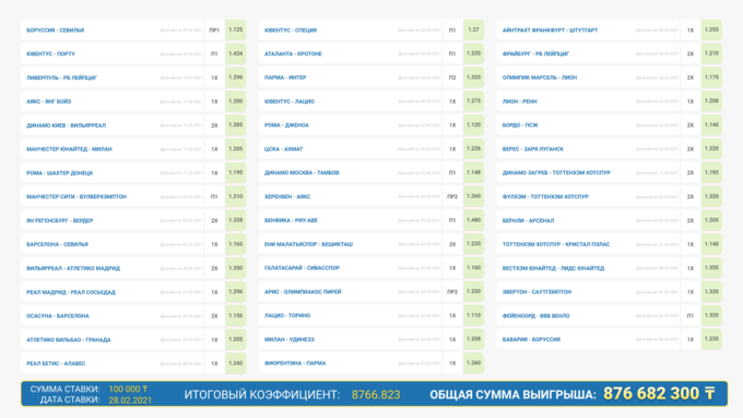 Игрок, который делал ставки на сайте одного из ведущих мировых букмекеров, рискнул крупной суммой в 100 тысяч тенге (примерно 238 долларов). Алматинец собрал экспресс из 44 (по числу прожитых лет) событий - и победил, выиграв 876 682 300 тенге, то есть более 2 миллионов долларов! Фантастическая сумма, которая наверняка мотивирует делать ставки на 1xBet и тысячи новых игроков.