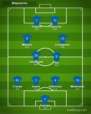 «Мариуполь» : Гальчук, Стасюк, Быков, Чоботенко, Меличенко (Кирюханцев, 55), Чех, Очеретько (Кащук, 68), Топалов, Мишнев, Бондаренко (Горбунов, 77), Танковский