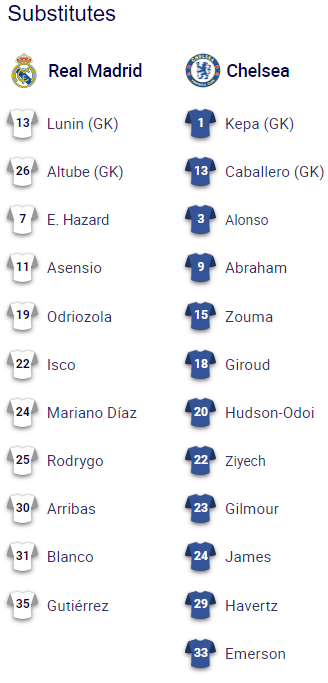 Стартовые составы команд: «Реал» Мадрид – «Челси».
