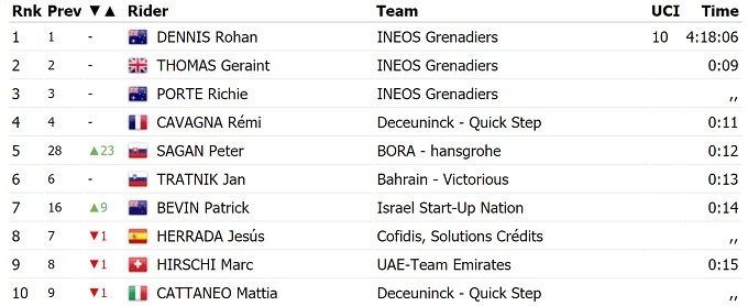 Лидером общего зачета остался победитель пролога Роан Деннис.