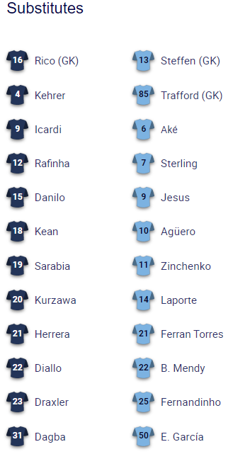 Стартовые составы команд: «ПСЖ» – «Манчестер Сити».