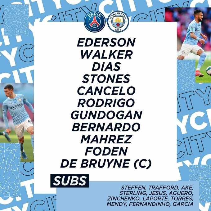 «Манчестер Сити»: Эдерсон, Уокер, Диаш, Родри, Стоунз, Ж.Канселу, Гюндоган, де Брюйне, Фоден, Б.Силва, Марез.