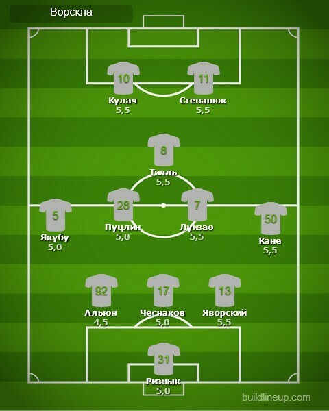 «Ворскла»: Ризнык, Яворский, Чеснаков (Сапай, 46), Альюн (Челядин, 46), Якубу (Ребенок, 46), Луизао, Пуцлин, Тилль, Кане (Кравчук, 68), Степанюк (Крупский, 75), Кулач.