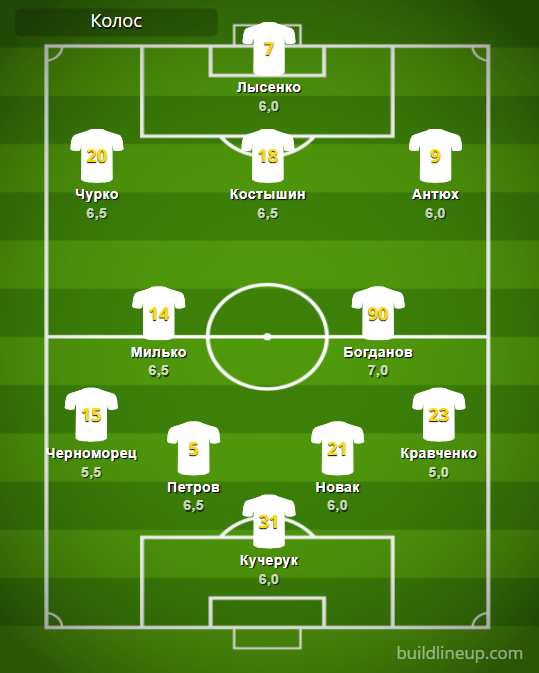 «Колос»: Кучерук – Черноморец, Петров, Новак, Кравченко – Милько (Ориховский, 79), Богданов (Задоя, 70) – Чурко (Ильин, 79), Костышин (Смирный, 63), Антюх – Лысенко.