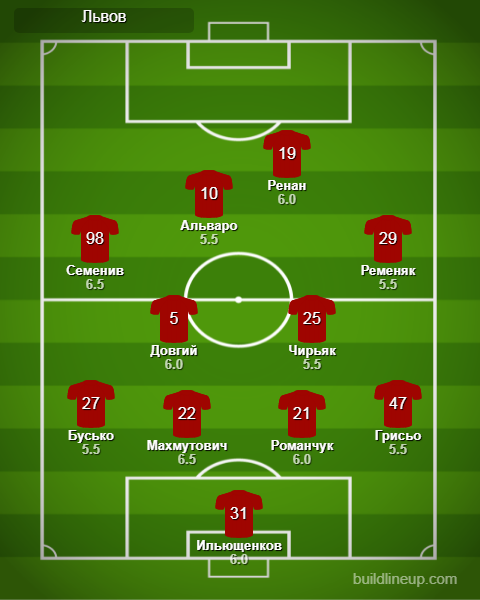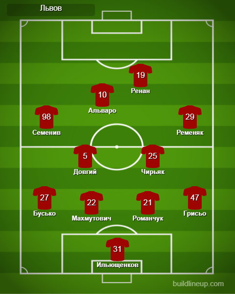 «Львов»: Ильющенков, Ременяк, Махмутович, Романчук, Грисьо, Довгий, Бусько (Крушинський, 89), Чирьяк (Сабино, 89), Альваро (Ныч, 63), Семенив (Казлаускас, 70), Ренан (Брикнер, 63)