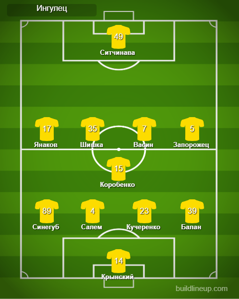 «Ингулец»: Крынский, Балан, Кучеренко, Салем, Синегуб (Квасный, 65), Коробенко, Васин (Шевцов, 72), Шишка (Плохотнюк, 72), Запорожец, Янаков (Козак, 59), Ситчинава.