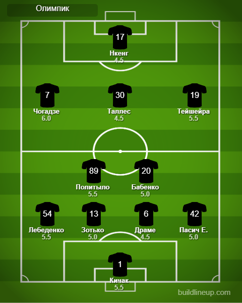 «Олимпик»: Кичак, Пасич Е., Драме, Зотько, Лебеденко, Бабенко, Политыло, Тейшейра, Таллес, Чогадзе (Бенито, 64), Нкенг.