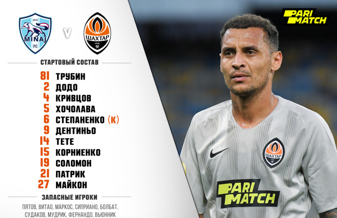 Шахтер: Трубин, Додо, Хочолава, Кривцов, Корниенко, Степаненко, Патрик, Майкон, Соломон, Тете, Дентиньо