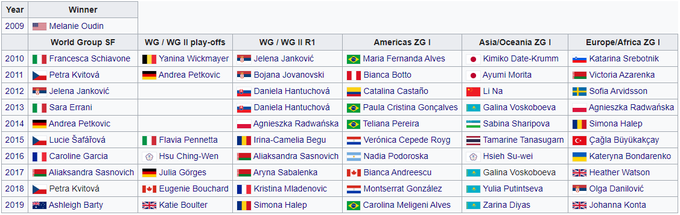 Эта награда вручается с 2009 года теннисисткам, которые представляют свою страну в Кубке Билли Джин Кинг и при этом являются примером смелости на корте и преданности своей команде.