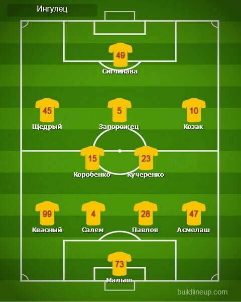 «Ингулец»: Малыш, Квасный (Бартулович, 23), Салем, Павлов, Асмелаш, Коробенко, Кучеренко, Запорожец, Козак (Янаков, 70), Щедрый (Коваленко, 70), Ситчинава