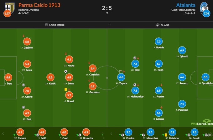 Украинский легионер «Аталанты» Руслан Малиновский стал одним из лучших игроков своей команды в матче 35-го тура чемпионата Италии против «Пармы» (5:2) по версии авторитетного статистического портала WhoScored.