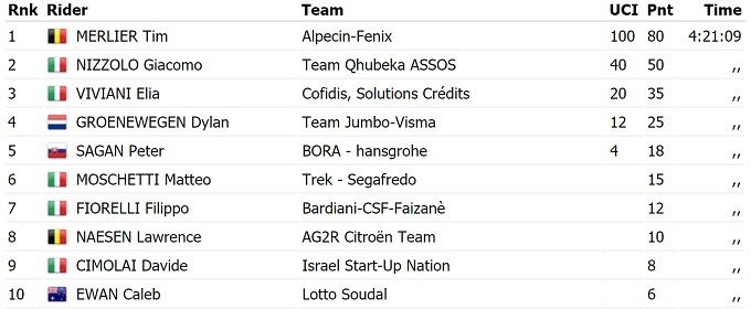 Бельгийский гонщик команды «Alpecin Fenix» Тим Мерлир стал победителем второго этапа Джиро д’Италия-2021. В финишном спринте он опередил Джакомо Ниццоло и Элию Вивиани.