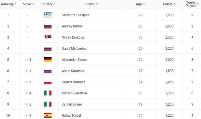 В чемпионской гонке Берреттини уже восьмой, а Рафаэль Надаль пока что даже не входит в потенциальное число участников Итогового турнира. Лидеры не изменились.