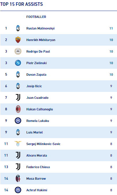 Однако, официальный сайт Serie A дает Руслану только 11 голевых передач! Оказывается, не засчитан ассист Малиновского в матче против «Беневенто», который прошел 9 января (4:1).