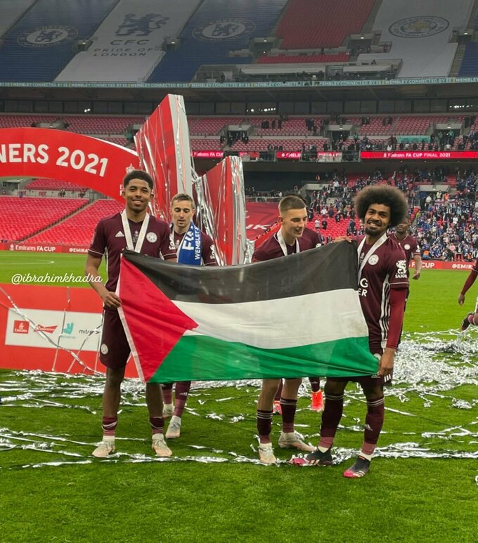 ФОТО. Игроки Лестера вынесли палестинский флаг после победы в финале Кубка