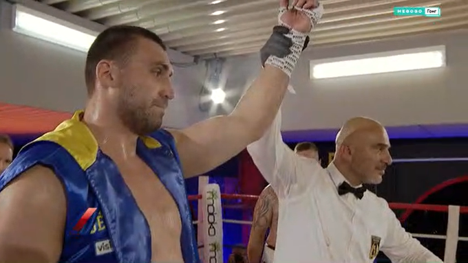Это 7-я победа Виктора на профи-ринге. Выхрист явно был недоволен уровнем 48-летнего (!) оппонента.