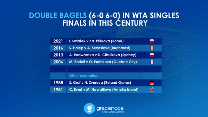 Любопытно, что Свёнтек не отдала сопернице ни одного гейма. Подобного в финалах на уровне WTA не случалось уже пять лет. Предыдущий раз такое одностороннее движение наблюдалось в матче Симона Халеп – Анастасия Севастова (Бухарест-2016).