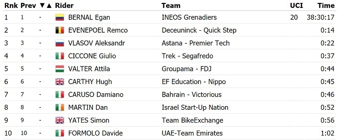 Лидером общего зачета остался победитель вчерашнего этапа Эган Берналь.