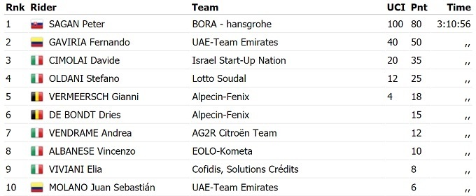 Словацкий гонщик команды «Bora Hansgrohe» Петер Саган выиграл десятый этап Джиро д’Италия-2021. В финишном спринте 3-кратный чемпион мира опередил Фернандо Гавирию и Давиде Чимолаи.