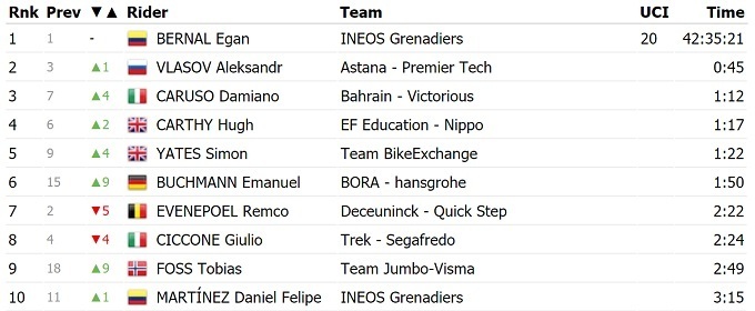 Швейцарский гонщик команды «Qhubeka Assos» Мауро Шмид из отрыва выиграл 11-й этап Джиро д’Италия-2021. В группе фаворитов обладатель розовой майки Эган Берналь успешно атаковал конкурентов и упрочил лидерство в общем зачете. Ремко Эвенпул провалил этап, проиграв более двух минут.