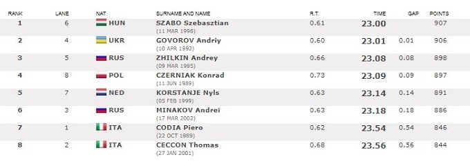 Украинский пловец Андрей Говоров завоевал серебро чемпионата Европы в Будапеште на дистанции 50 метров баттерфляем. Он проиграл только хозяину соревнований Себастьяну Сабо.