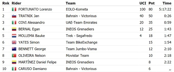 Этап выиграл Лоренцо Фортунато, Берналь укрепил лидерство
