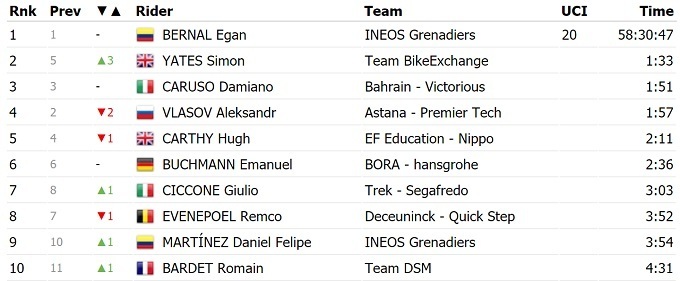 Эган Берналь провел очередную атаку на других фаворитов общего зачета и укрепил свое лидерство в генеральной классификации.
