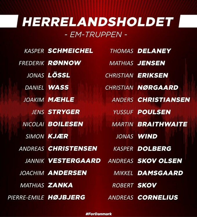 Главный тренер Каспер Хьюлманд определил заявку сборной Дании на континентальный форум.