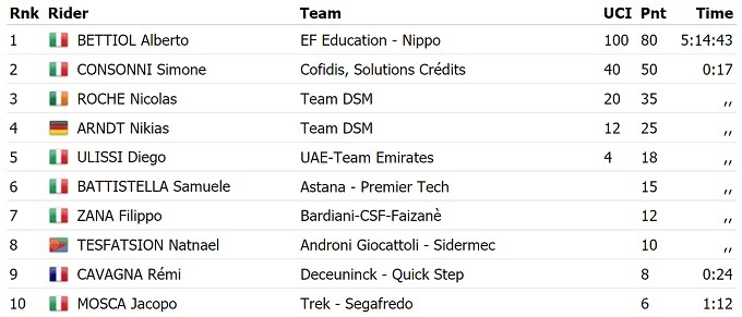 Итальянский гонщик команды «Education First» Альберто Беттиоль из отрыва выиграл 18-й этап Джиро д’Италия-2021. В отрыве дня принимал участие и украинец Андрей Пономарь, который в итоге занял 18-е место – его лучший результат на нынешней Джиро.