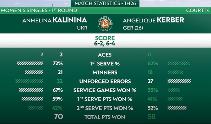 Ангелина Калинина (Украина) – Анжелик Кербер (Германия) – 6:2, 6:4