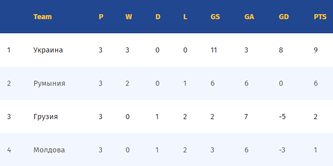 - 4. Молдова – 1 очко (мячи 3–6)