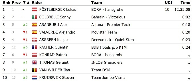 Лидером общего зачета остался победитель вчерашнего этапа Лукас Постльбергер.