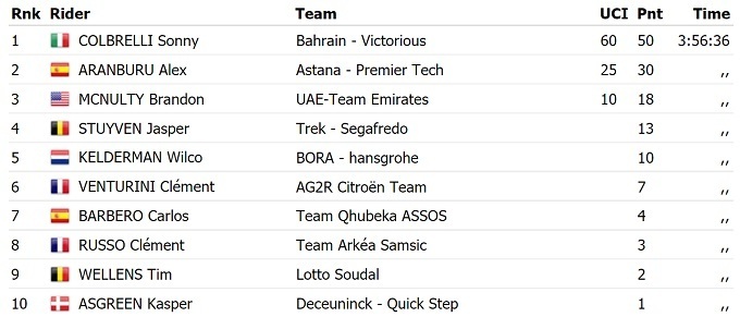 Итальянский гонщик команды «Bahrain Victorious» Сонни Кольбрелли выиграл третий этап многодневки Критериум Дофине. В финишном спринте он опередил Алекса Аранбуру и Брэндона МакНалти.