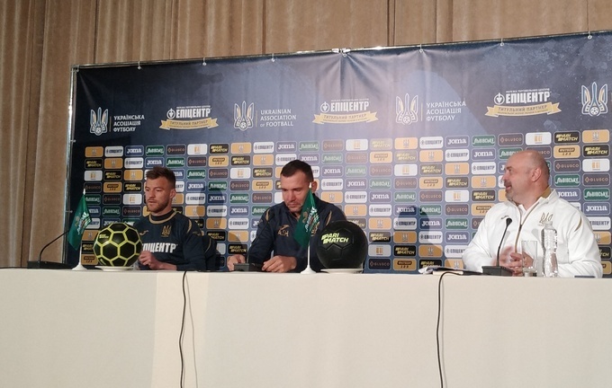 На пресс-конференцию Шевченко взял с собой вингера «Вест Хэма» Андрея Ярмоленко. Наставник национальной команды был традиционно очень спокоен и уверен в себе.