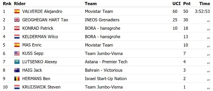 Испанский велогонщик команды «Movistar» Алехандро Вальверде стал победителем шестого этапа Критериума Дофине. Он опередил Тао Геогегана Харта и Патрика Конрада.