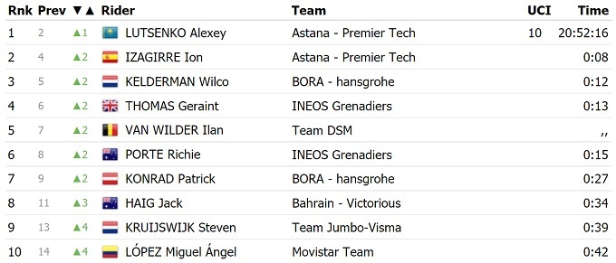 Желтую майку лидера общего зачета перехватил победитель четвертого этапа, Алексей Луценко из «Астаны».