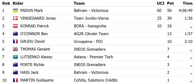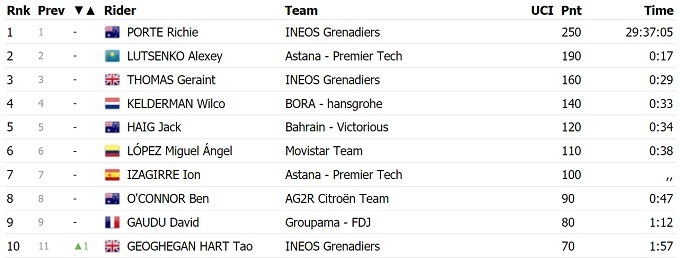 Что касается общего зачета, то в нем победу одержал австралиец Ричи Порт из команды «Ineos».